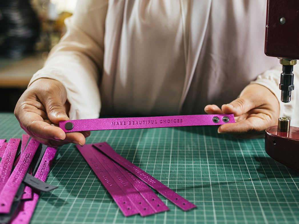 Stefanie Lischka tritt für eine wertegeleitete Unternehmenskultur mit langfristiger Perspektive ein – und der Erfolg gibt ihr recht. Wenn Leute, die ihr Produkt nicht kennen, zu ihr sagen: „Du machst Bänder…. und davon kann man leben?“ kann sie lächelnd nicken. Mit ihren außergewöhnlichen Designs beweist Lischka ihr cleveres Gespür für internationale Trends: Zu ihren Kundinnen zählen unter anderem GE HealthCare, die Bold Community der WKO, Wr. Philharmoniker, die Schweizer Modemarke Akris und das MuseumsQuartier. Kein Wunder: Wristbanditz unterstützt Events dabei, dieses ganz besondere Gefühl von Zugehörigkeit und Inspiration zu entfachen, das man bei einem richtig gelungenen Abends verspürt – mit individueller Botschaft am Handgelenk.
